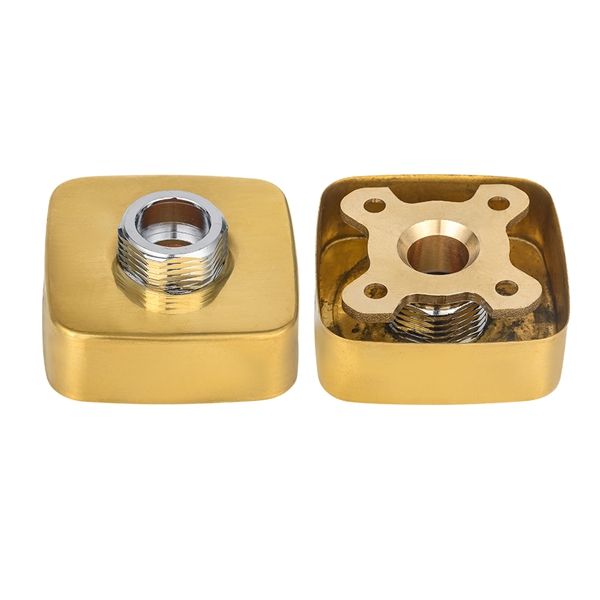 Piastra per rubinetto doccia quadrata dorata. Il suo scopo principale è fornire una base robusta, piatta e facile da installare per i rubinetti a parete. Il prodotto adotta la struttura composita di ottone e acciaio al carbonio: le parti chiave di forza e di connessione che sono a diretto contatto con la parete e l'interfaccia dei rubinetti utilizzano l'ottone per garantire resistenza alla corrosione a lungo termine e tenuta della connessione; Come struttura portante principale, il corpo della piastra è realizzato in acciaio al carbonio ad alta resistenza, che fornisce la rigidità di supporto necessaria per l'insieme e previene la deformazione dovuta allo stress a lungo termine. La superficie del corpo della piastra è trattata mediante galvanica e altri processi, mostrando un aspetto dorato e facile da pulire. È progettato come un quadrato standard con un foro di installazione preimpostato per adattarsi ai comuni accessori del rubinetto e semplificare il processo di installazione.