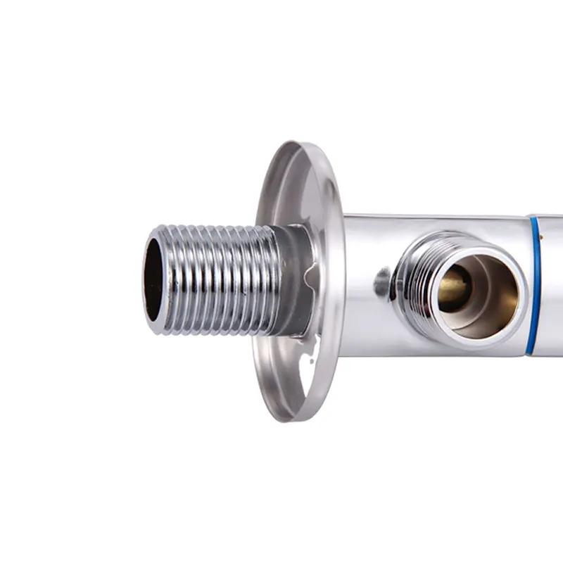 La nostra valvola ad angolo standard in ottone rinforzato con enfasi sulle prestazioni di pressione. Il corpo della valvola adotta la costruzione monopezzo in ottone massiccio migliorata, la forgiatura complessiva spessa, ha la maggiore resistenza strutturale, può resistere alla pressione più forte. La pressione nominale PN16 significa che il prodotto è progettato per resistere a pressioni nominali più elevate rispetto alle tradizionali valvole ad angolo domestiche, fornendo un supporto di interfaccia più stabile per apparecchiature come gli scaldacqua che possono causare fluttuazioni di pressione. Il nucleo della valvola in ottone ceramico adatto per acqua calda e fredda è selezionato per garantire la tenuta. La superficie del corpo è rifinita con un alto placcatura a tre strati di qualità (base in ottone, rivestimento in nichel anticorrosione, finitura cromata) per una maggiore resistenza alla corrosione. Il prodotto adotta un'interfaccia G1/2 standard e presenta una forte adattabilità all'installazione. È progettato per fornire un componente di collegamento di base robusto, durevole, a prova di esplosione e a prova di perdite per posizioni quali scaldabagni, lavelli da cucina, lavandini del bagno e servizi igienici nei corsi d'acqua domestici.
