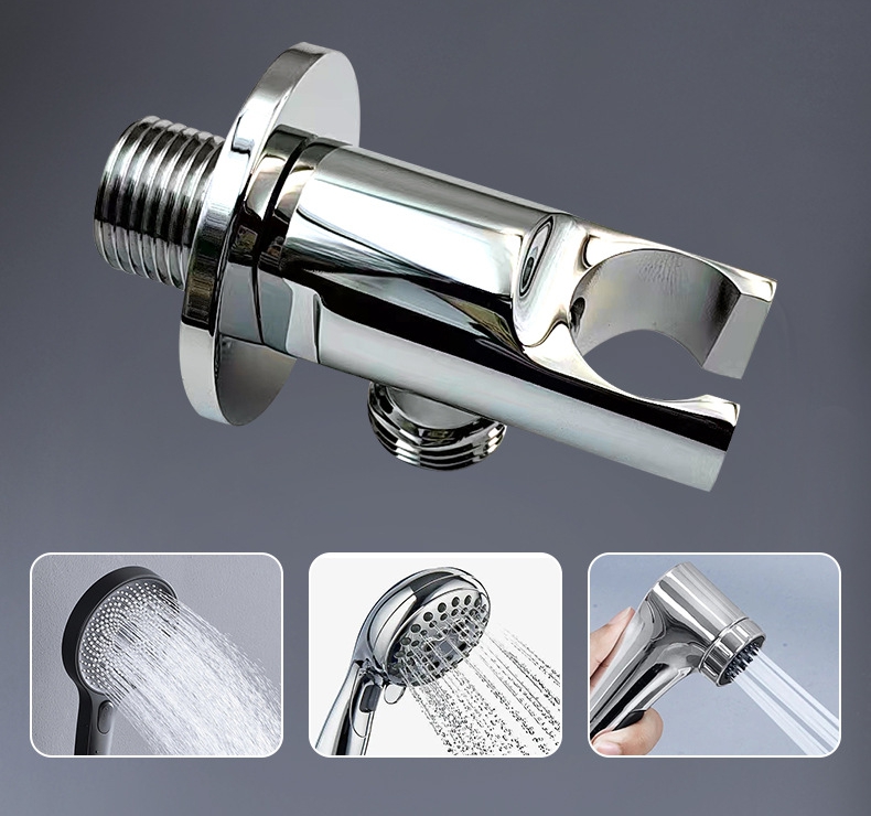 Valvola ad angolo quadrato in ottone massiccio addensato con supporto per doccia, valvola di arresto diritta da 1/2" per doccetta per bidet e doccia a mano, raccordo idraulico per il bagno